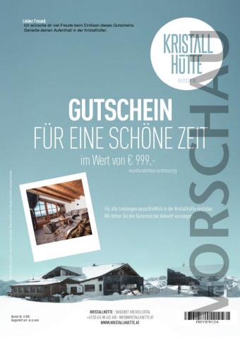 Ich wünsche dir viel Freude beim Einlösen dieses Gutscheins. Genieße deinen Aufenthalt in der Kristallhütte!